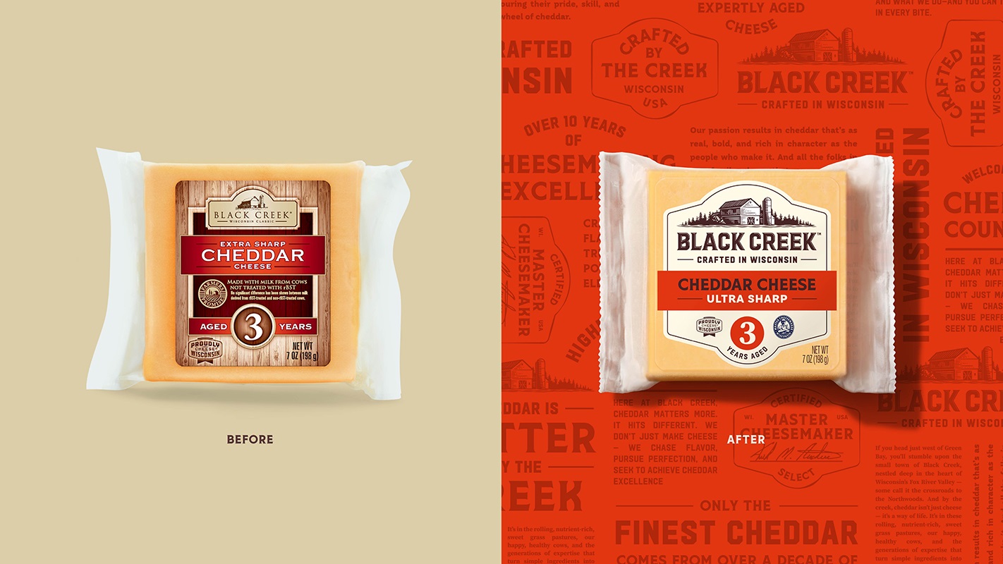 “Chase Design Group truly understood what makes Black Creek special,” says Samina Kirchen, Brand Manager, Specialty Cheese at Saputo. “They captured the craftsmanship, confidence, and pride that define our Wisconsin roots and translated them into a visual identity that feels both authentic and elevated. The new design honors where we come from while setting us up for the next chapter of growth.”