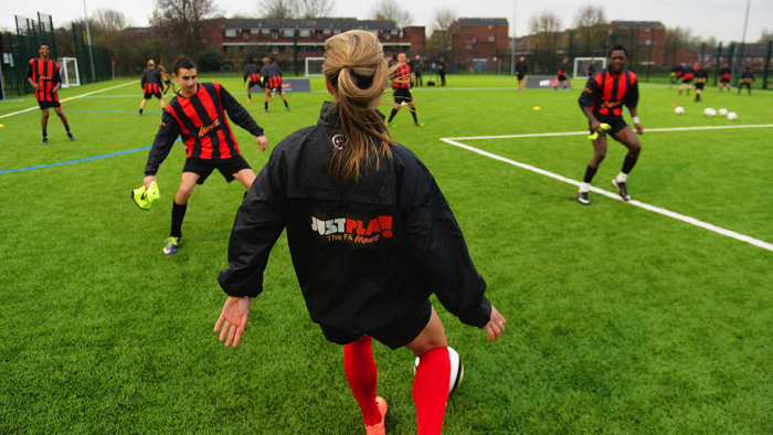 692555248The FA Mars Just Play initiative, now in its third year, has centres all across the country open to adults looking to get back into fun, flexible football. Just Play supplies everything that you need – all players need to bring is their kit, their boots, and themselves – and we take care of the rest.
