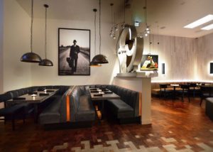 To build on Hal’s affiliation with the local arts scene, Mystery designed a separate gallery space within the restaurant, which hosts regularly changing exhibitions. With a full size wall that slides in place to close off the area and state of the art AV system, it acts as a flexible private entertaining space for parties and corporate events.