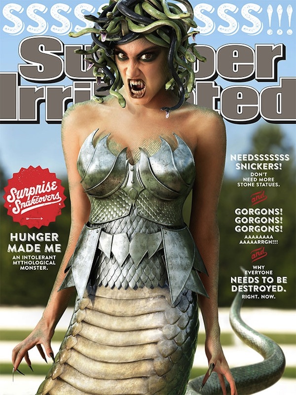 Snickers Swaps Sexy Magazine Cover Model For A Scary-Looking Medusa In Witty Ad